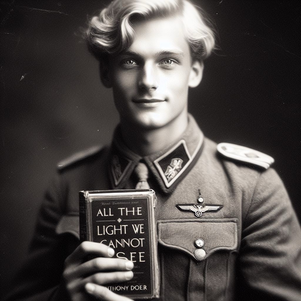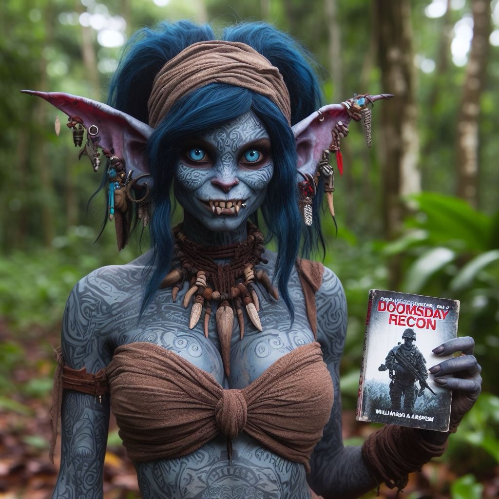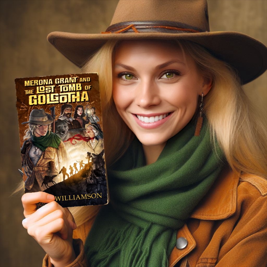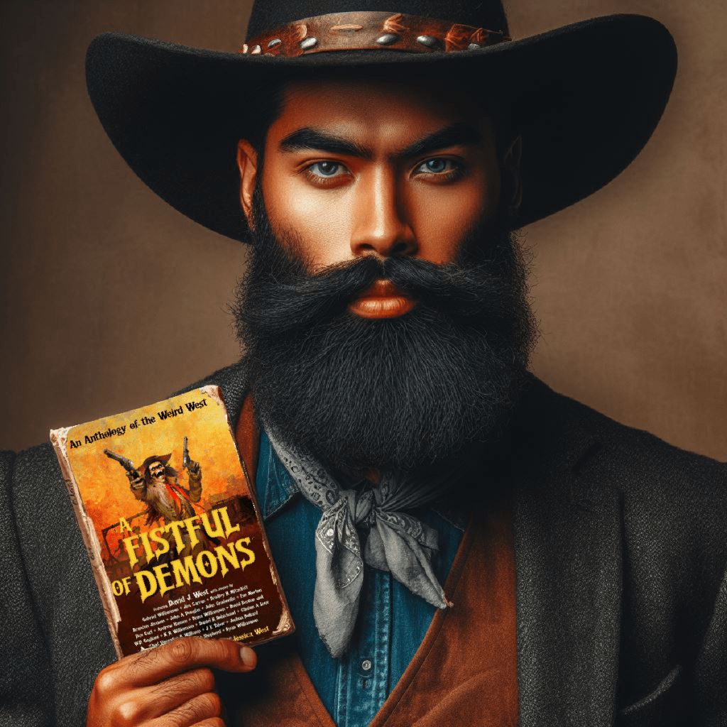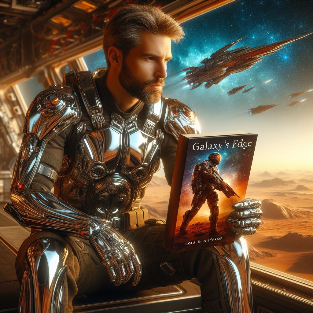 Figured it would be fun to make images of characters holding copies of the books they appear in, so here goes—some of mine and some from books I like. These were all generated with DALL-E 3.