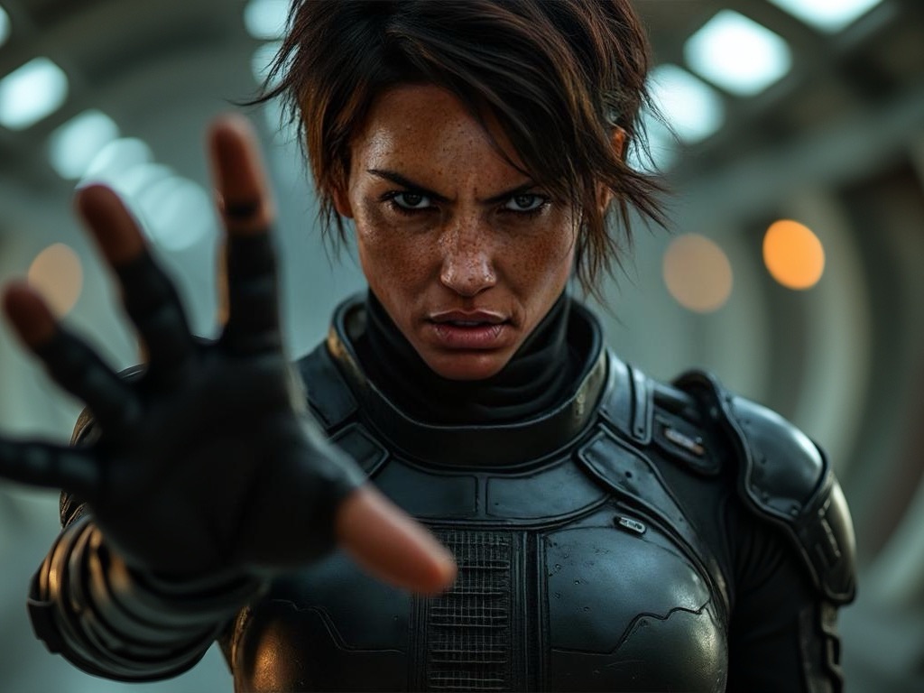 What follows is a masterclass in science fiction combat choreography as a small, seemingly ordinary woman systematically destroys him and his five heavily-armed bodyguards. She survives multiple hits from pulse rifles that should have killed her, anticipates attacks with supernatural awareness, and demonstrates abilities that turn common weapons into instruments of impossible lethality.