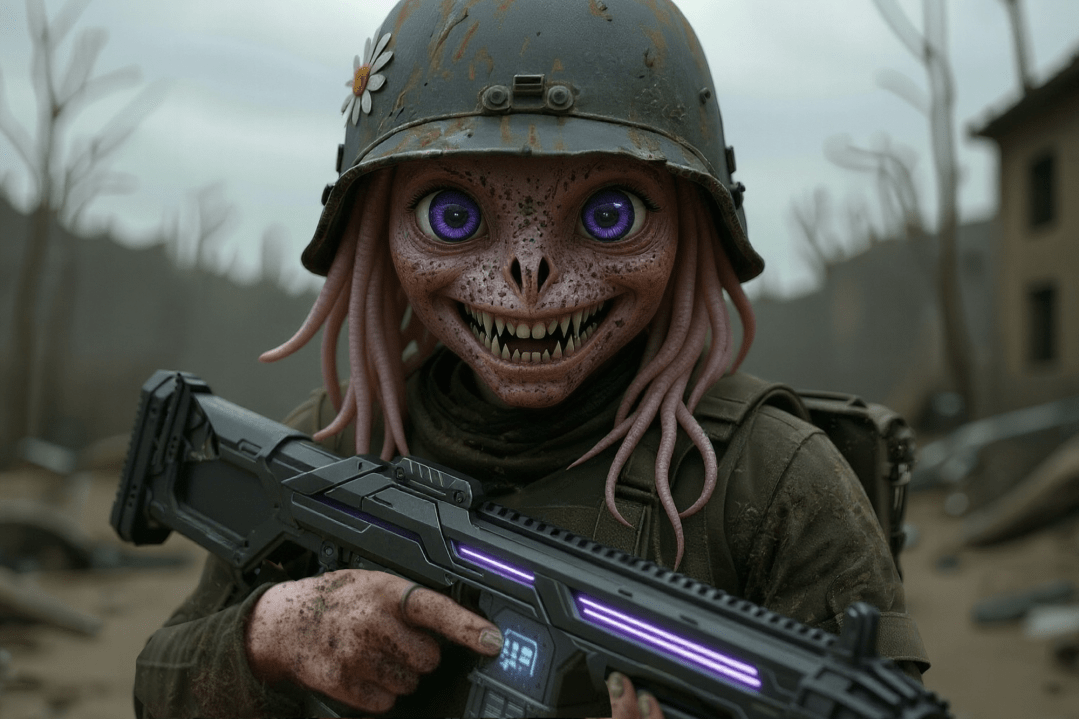 Later I wrote a second Vylaraian character—a twelve-year-old child soldier with an oversized helmet and a beat-up plasma carbine. When she snapped her fingers at another character, demanding attention, the words came out: “Oi! I’s talkin’ at you, chumbait.”
