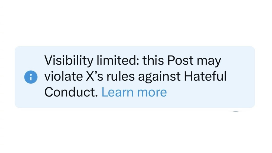 My post about how the platform suppresses content critical of its policies got flagged for “Hateful Conduct” within seven seconds of posting.