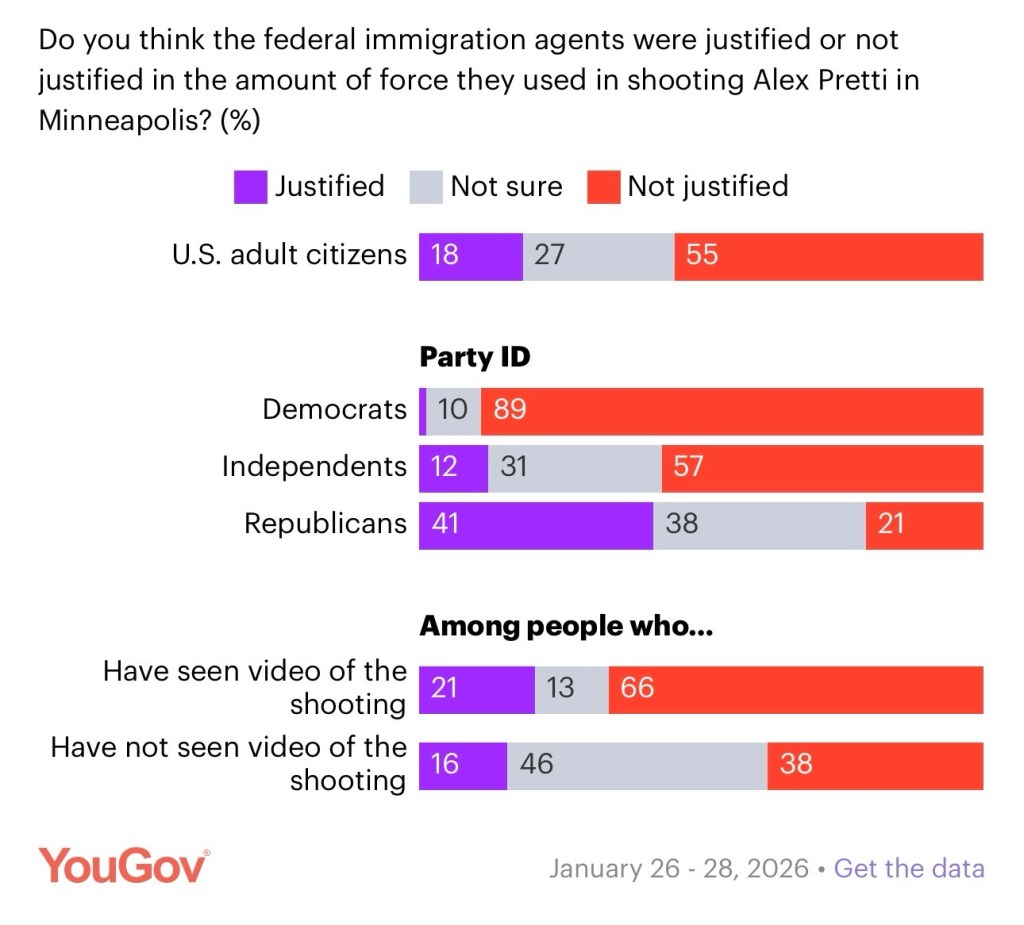 41% of Republicans flat out say Pretti’s extrajudicial murder was justified.